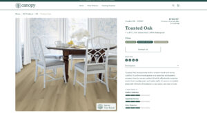 Sarah Ballew, marketing manager for Canopy, focused on the user interface/user experience in collaborating with Broadlume on its customized version of Enterprise. For example, Ballew studied the websites of trending consumer brands Yeti and Patagonia to see their approach and how it could translate into flooring. The primary goal for Canopy is to create a seamless and easy customer experience. Enterprise will be an important step in that process. “Users will see additional features in the weeks and months to come that truly listen to the end customer on a very personal level,” Ballew said.