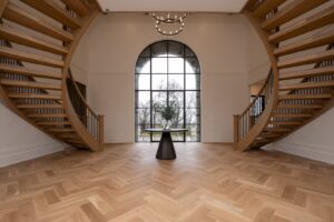 Certified Mirage dealer Swine Design of Emmaus, Pa., partnered with local builder Erwin Forrest Builders to complete a high-profile installation that serves as a prime example. The eye-catching, high-end residential project—the stately Camel’s Hump Estate residence in Bethlehem Township, Pa.—features Mirage’s white oak herringbone pattern in Natural Exclusive Brushed from the company’s new 2025 Blanc Collection. “This installation perfectly showcases how Mirage transforms homes into timeless examples of wood flooring excellence,” said Jerome Goulet, vice president of marketing, Mirage.